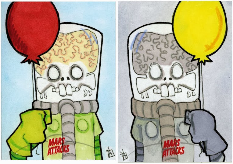 The 61th and 62th (of 106) sketch cards done for the Mars Attacks Invasion trading card series by Topps.